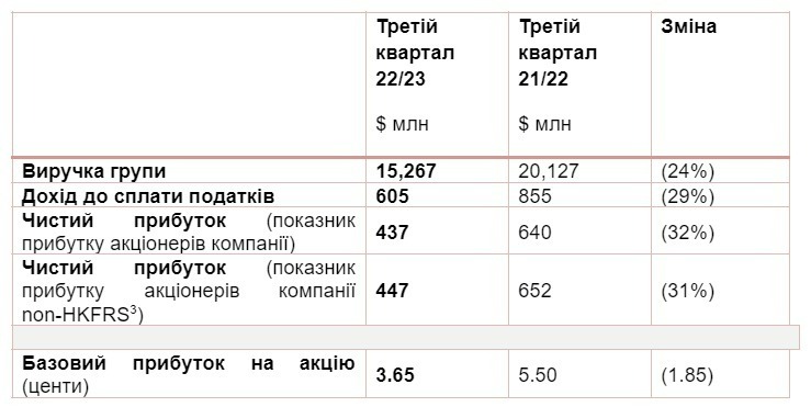 Показники за третій квартал 22/23 фінансового року: